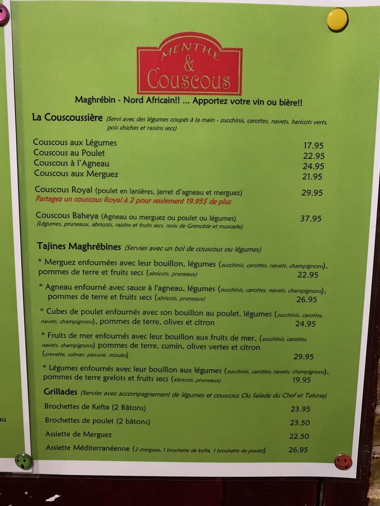 Book now at menthe et couscous in montréal, qc. Located at 361 emery h2x 1j2 #montreal www.mentheetcouscous.ca. Explore tweets of menthe et couscous @menthecouscous on twitter. Welcome to menthe & couscous ! Les recettes de menthe du blog couscous et puddings :